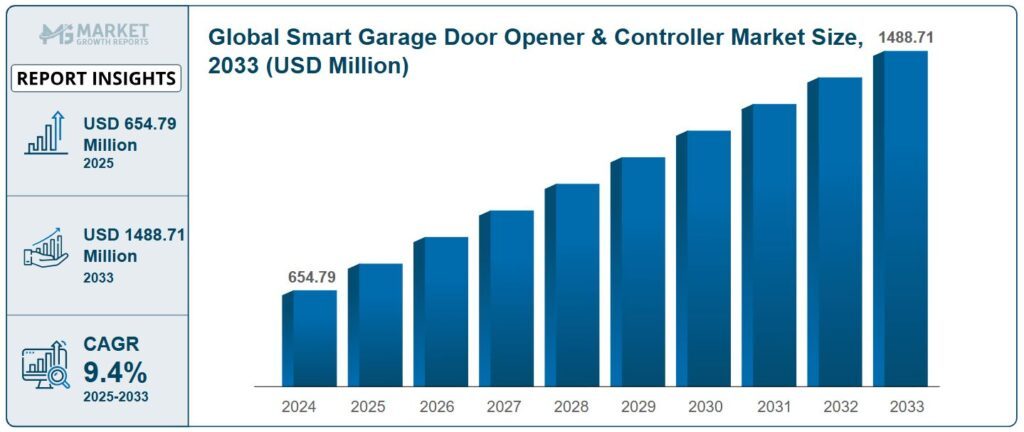 “Smart Garage Door Opener & Controller Market” – Research Report, 2025-2033 delivers a comprehensive analysis of the industry’s growth trajectory, encompassing historical trends, current market conditions, and essential metrics including production costs, market valuation, and growth rates. Smart Garage Door Opener & Controller Market Size, Share, Growth, and Industry Analysis, By Type (Wi-Fi based.Bluetooth based ), By Application (Residential Sector, Commercial Sector), Regional Insights and Forecast to 2033 are driving major changes, setting new standards and influencing customer expectations. These advancements are expected to lead to significant market growth. Capitalize on the market’s projected expansion at a CAGR of 9.4% from 2024 to 2033. Our comprehensive [91+ Pages] market research report offers Exclusive Insights, Vital Statistics, Trends, and Competitive Analysis to help you succeed in this Information & Technology sector.