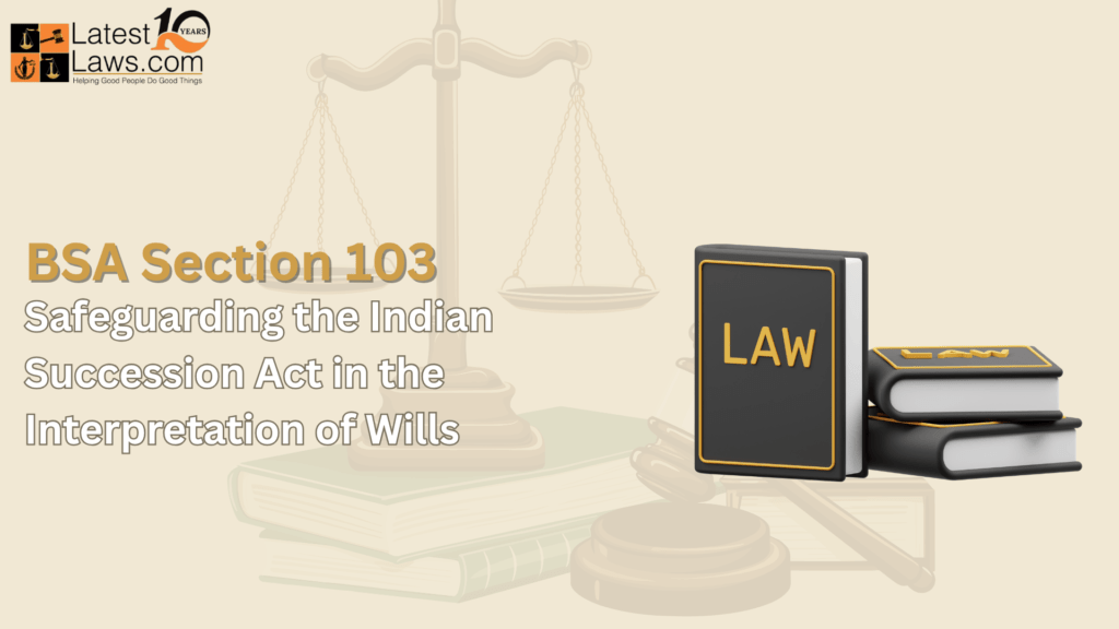 Section 103 of the Bharatiya Sakshya Adhiniyam, 2023, may appear narrow in its scope but serves an essential function. It safeguards the independence and integrity of the Indian Succession Act in matters of testamentary interpretation. By ensuring that the procedural rules of evidence do not override the established principles of succession law, it maintains the legal balance between evidence and inheritance laws.